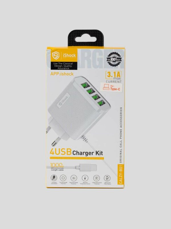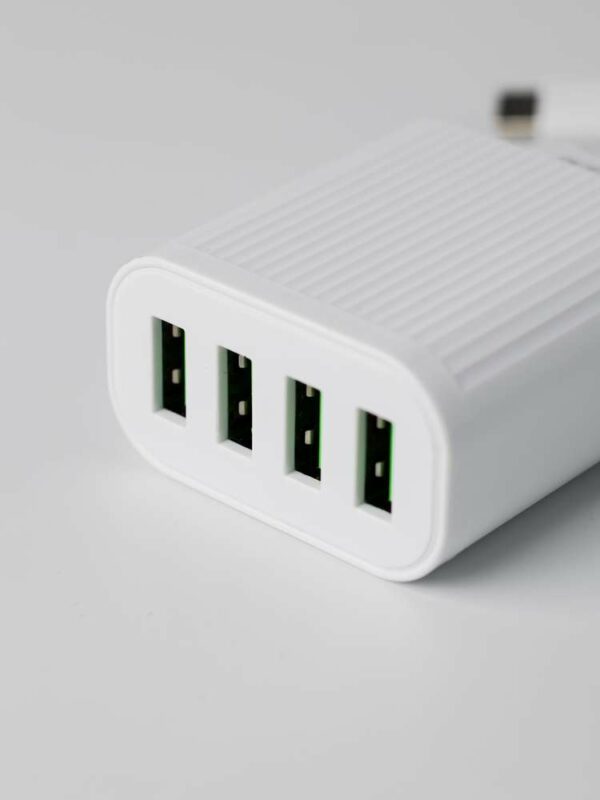 شاحن منزل بأكثر من مدخل 4usb لجميع أجهزة سامسونج الحديث بسرعة شحن 3.1A يعطي اضاءة مداخل عند وصله بالكهرباء
