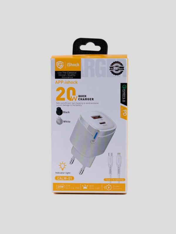 شاحن منزل مع كيبل بسرعة شحن 20W مداخل عظمة الشحن PD + USB بالأضافة الى كيبل Type C TO Iphone
