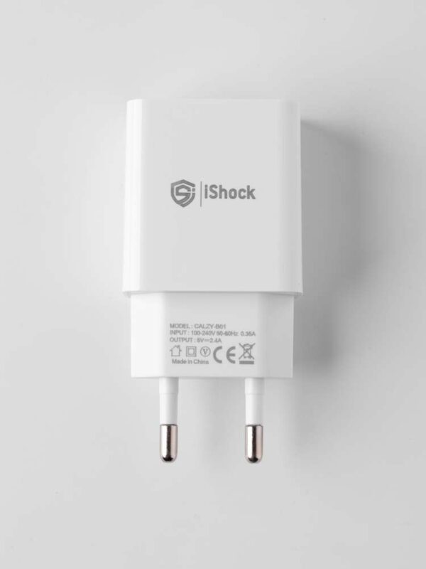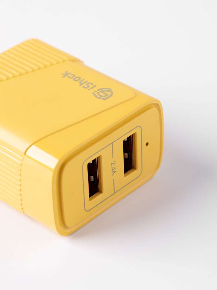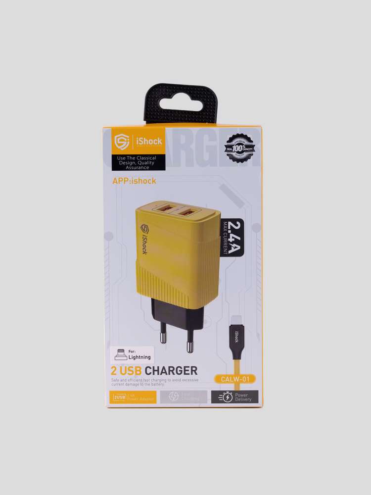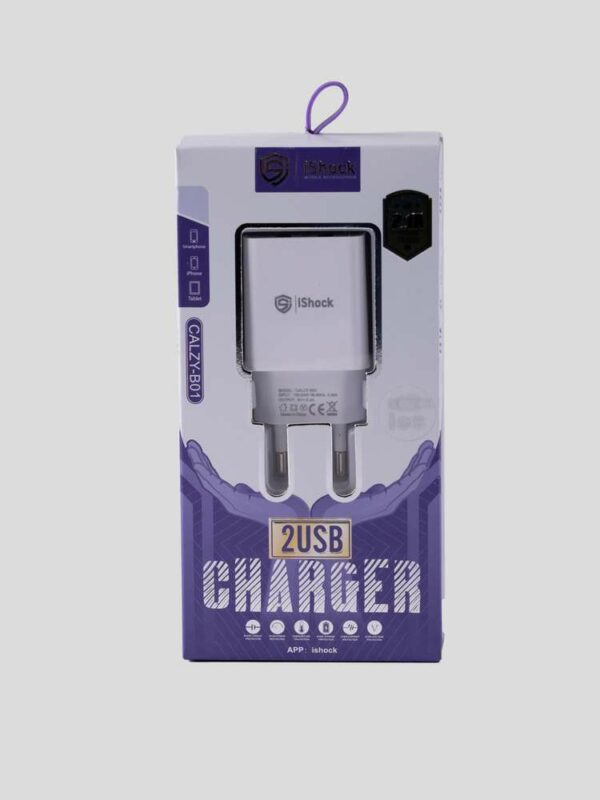 شاحن منزل يدعم جميع أجهزة موبايل بسرعة شحن 2.1A بمدخلين USB يدعم أجهزة مداخل Iphone + Samsung + Type C