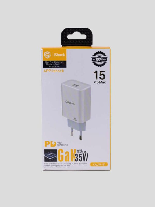 شاحن منزل يدعم موبايل ايفون 15Pro Max بسرعة شحن 35W GAN بمدخل PD