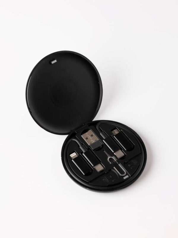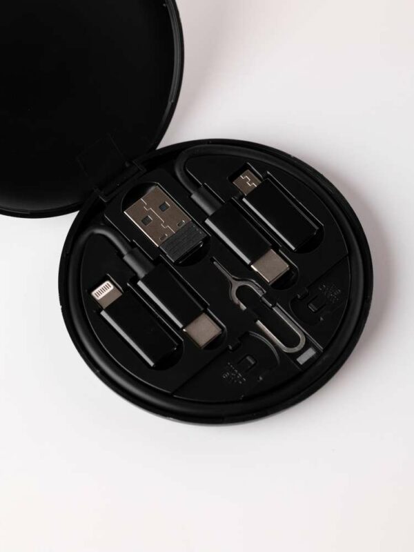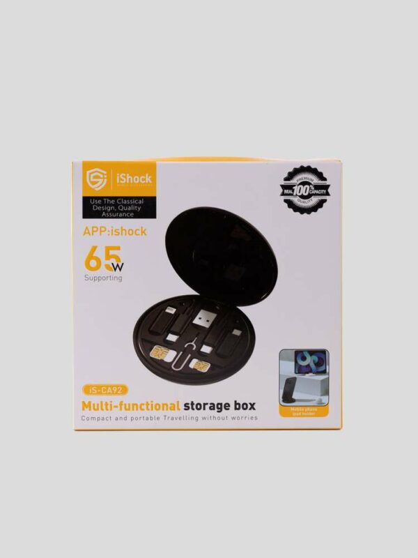 علبة تحتوي على عدة كوابل و حافظة شرائح يوجد داخل العلبه تحويله لمداخل الشحن ويوجد ابرة E-SIM تدعم العلبه 65W